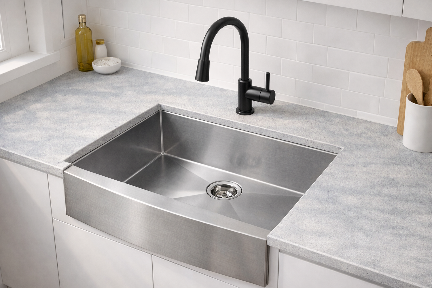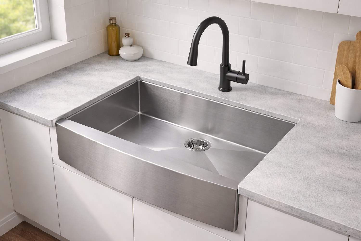 For premium projects, a 16-gauge stainless steel kitchen sink offers superior strength. For large-scale residential supply, 18-gauge stainless steel kitchen sinks are widely accepted and cost-efficient.