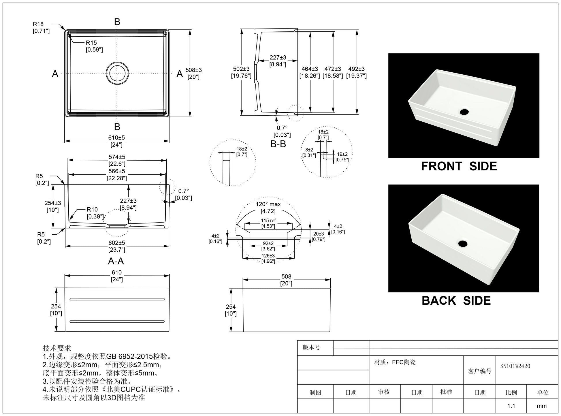 24 Inch Farmhouse Kitchen Sink – Short Apron | SANIKB SN101W2420