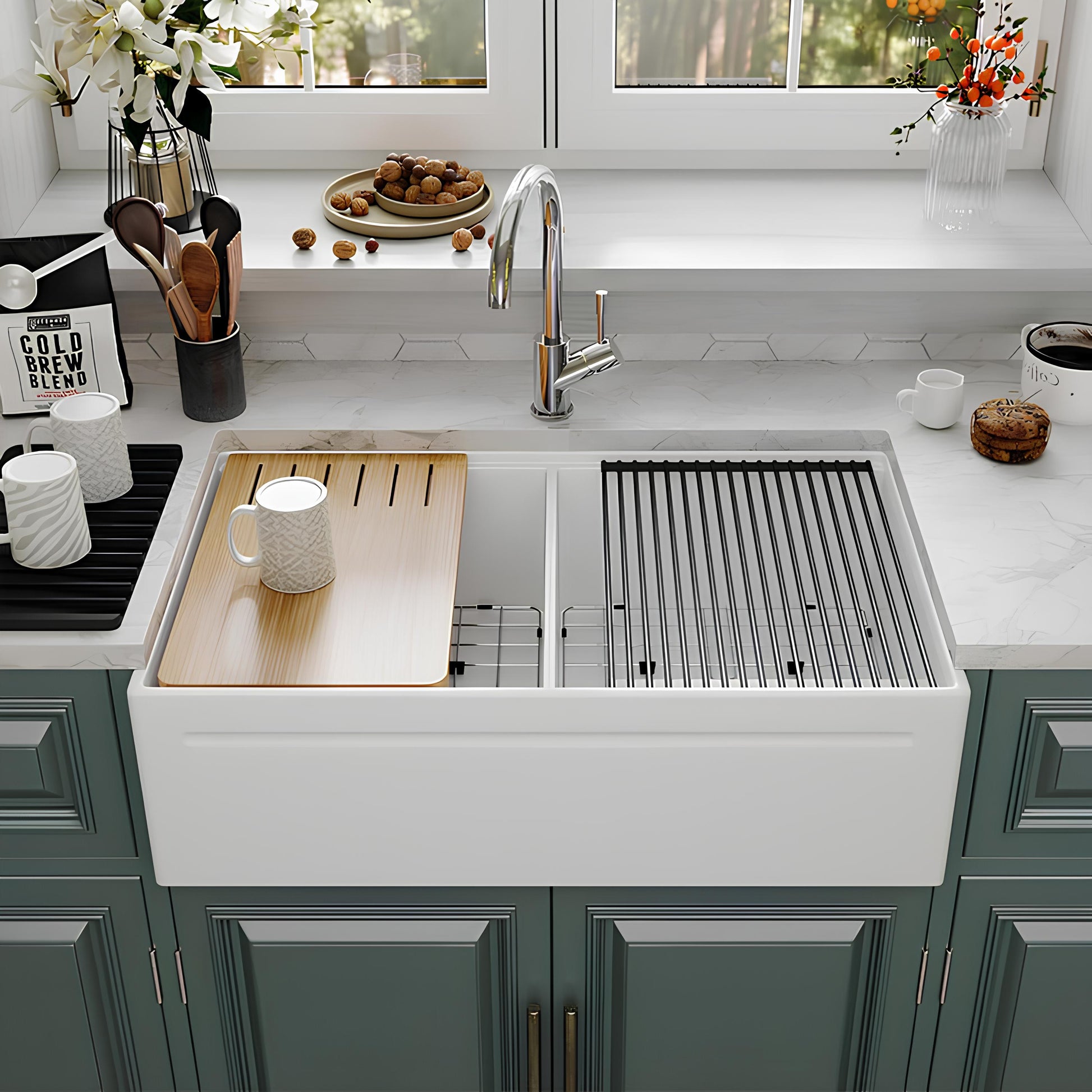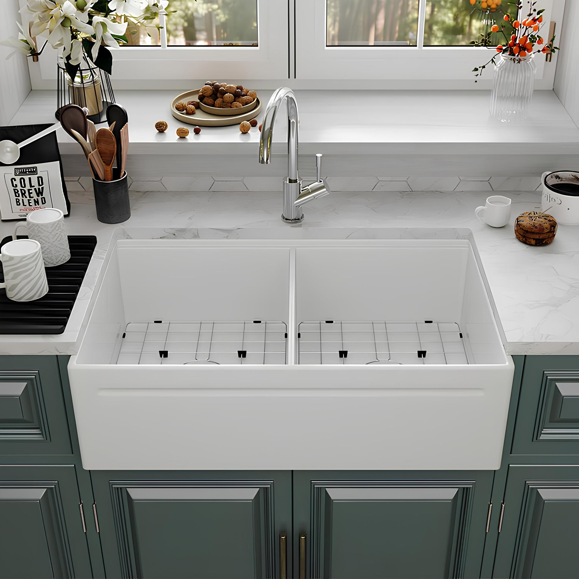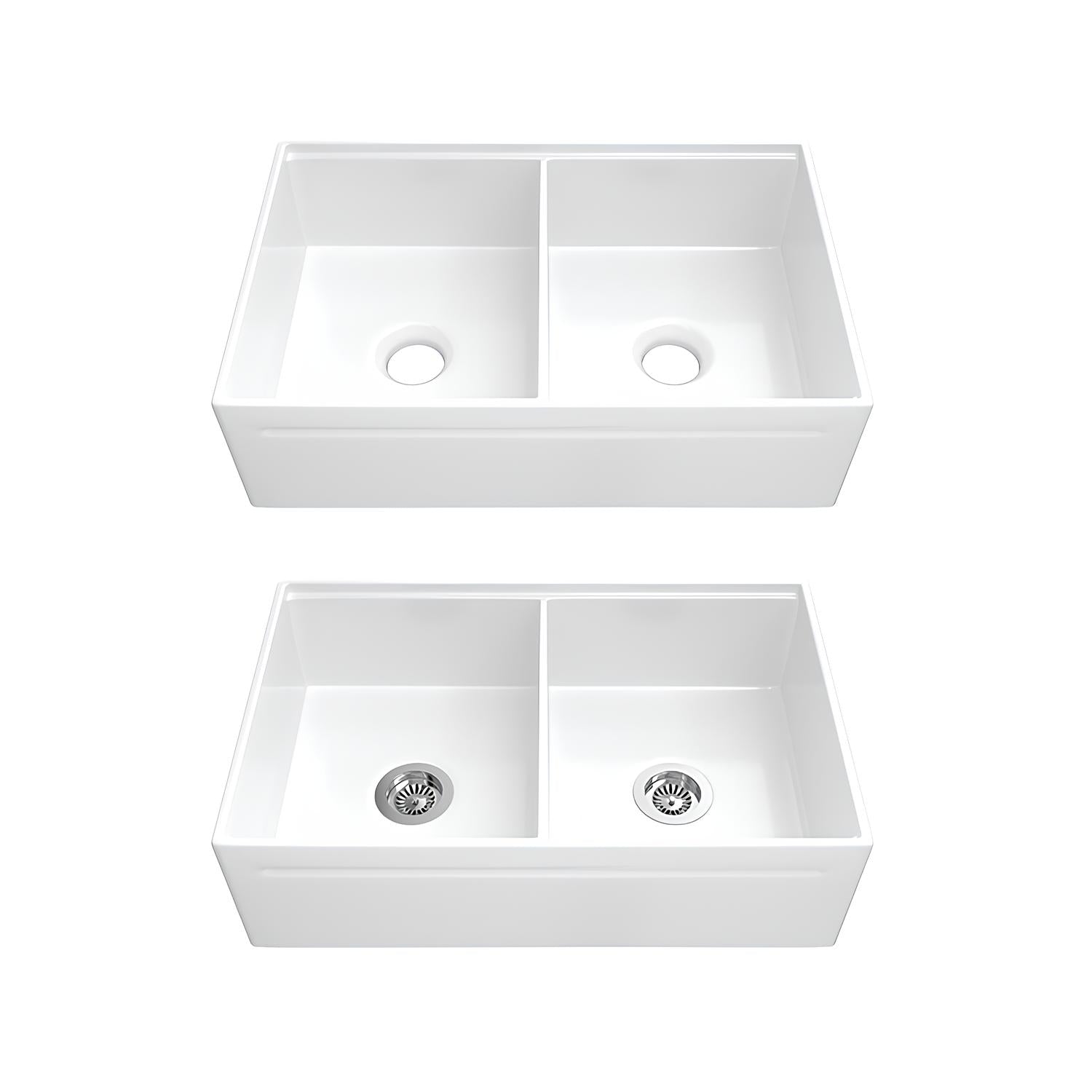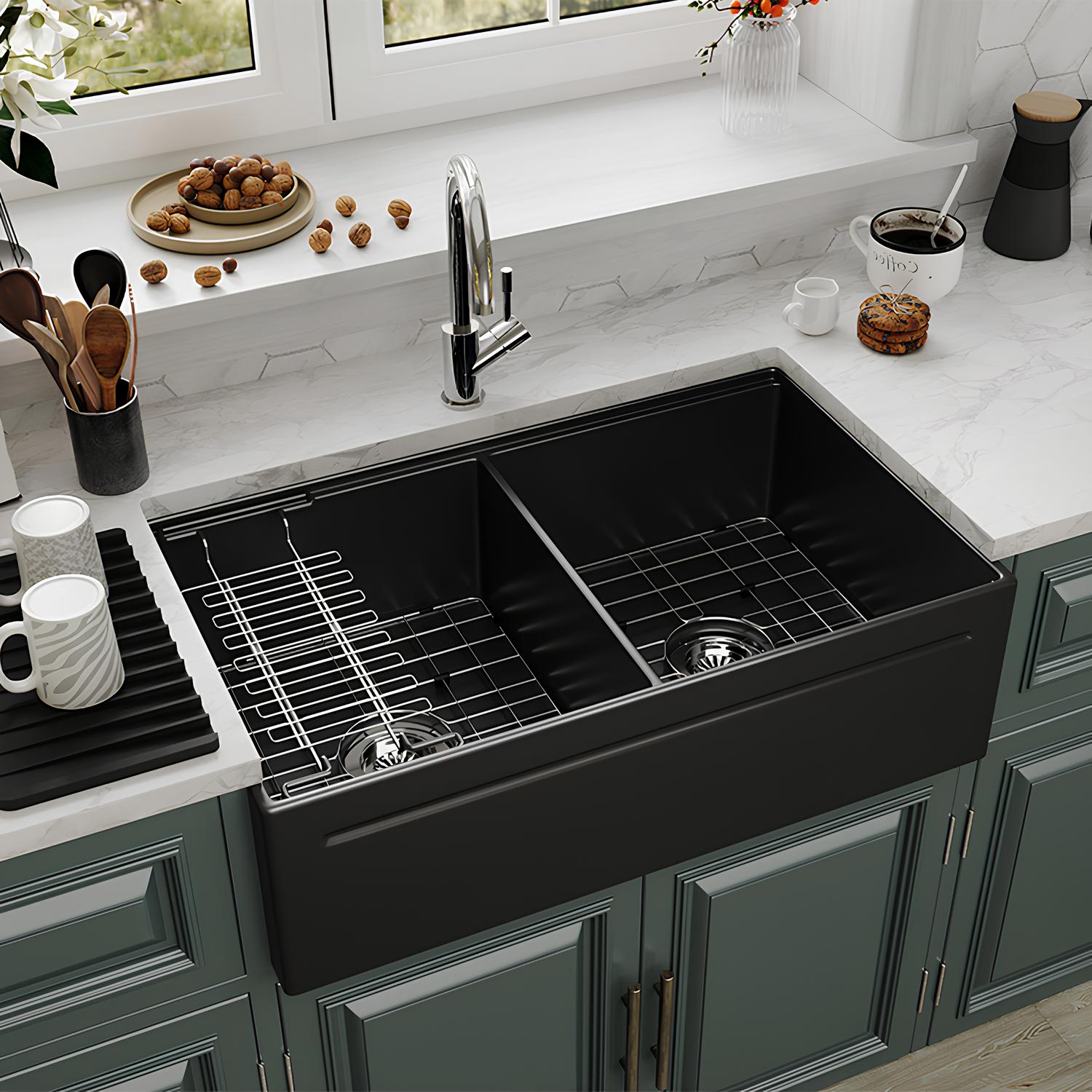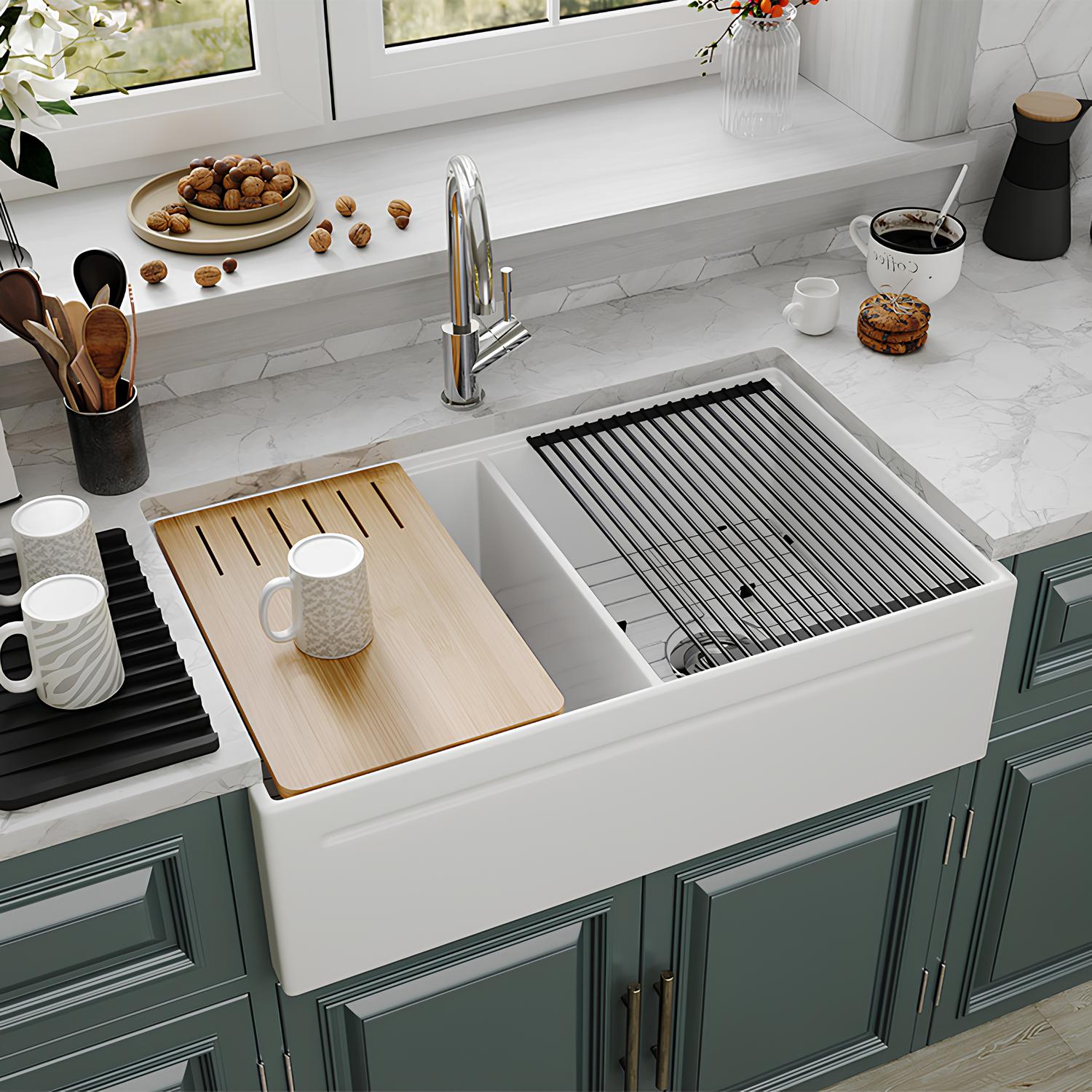Premium 33″ Fireclay Double Bowl Farmhouse Sink – Built for Modern Kitchens