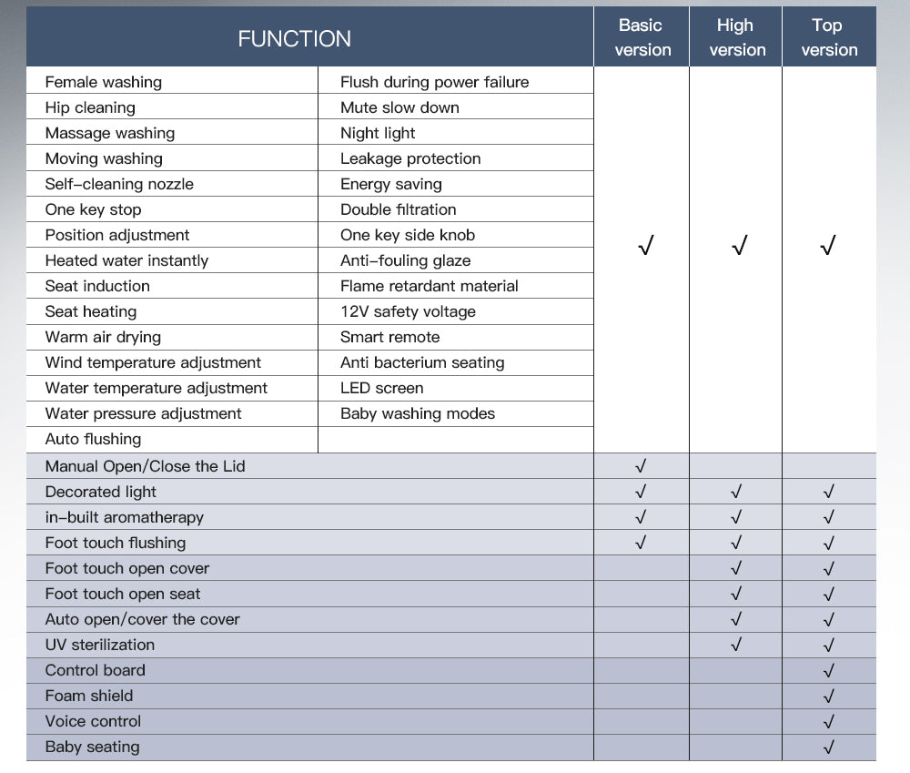 The G5 supports extensive OEM and ODM customization to match regional preferences and project specifications. Options include warm water temperature profiles, pressure-setting adjustments, bidet spray modes, heated seat levels, warm air dryer timing, and night-light brightness. Clients may select remote-control layouts, side-panel designs, sleek toilet seat styles, and installation formats suited for compact bathrooms or larger contemporary spaces. These customization capabilities help brands compete with major smart toilet models while maintaining factory-level quality and consistent delivery.